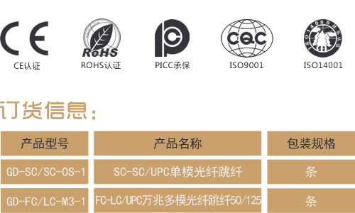 * 护套颜色:单模OS2黄色,多模OM1/OM2橙色,万兆多模OM3水绿色