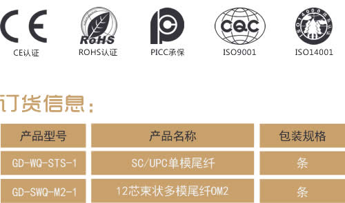 * 护套颜色:单模OS2黄色,多模OM1/OM2橙色,万兆多模OM3水绿色