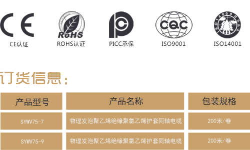 SYWV系列物理发泡聚乙烯绝缘聚氯乙烯护套同轴电
